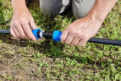 - TEE fittings: These break the mainline into smaller branches that follow the rows of crops.